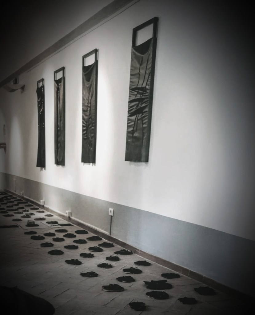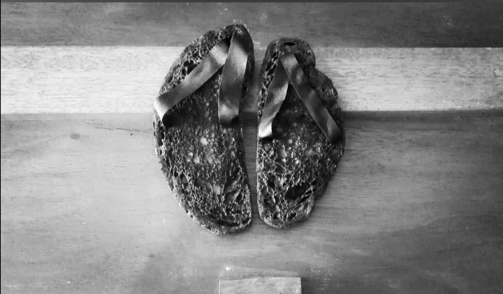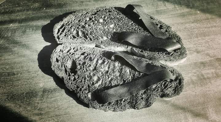 es el título de una instalación visual que consiste en un racimo de chancletas obtenidas de la combustión de rebanadas de pan de varios tamaños, depositadas en el suelo de tal manera que dan testimonio de la co- presencia e intersecciones de pasos. Pasajes atribuibles y, de hecho, reconectables a vidas cortadas prematuramente. Vidas animadas por la fragilidad o el orgullo, acompañadas de valentía o, por el contrario, de mera pasividad.