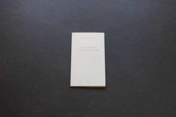 - Nuove rapide scosse retiniche è stato elaborato come una partitura di segni sonori e ideali (affiorano alla mente, su ogni altra suggestione possibile, i lavori di John Cage per piano preparato). Il progetto mi pare si espleti nella ricerca di un´altra musica, comprendendo come dai tempi illusivi e armonici della visione pitagorica dell´universo (VI sec. a. C.), si sia pervenuti alla nostra contemporaneità traslucida e decadente, talmente invasiva e brutalizzante da dover essere spezzata in tanti frammenti per ricavarvi illuminanti schegge acromatiche.