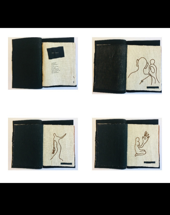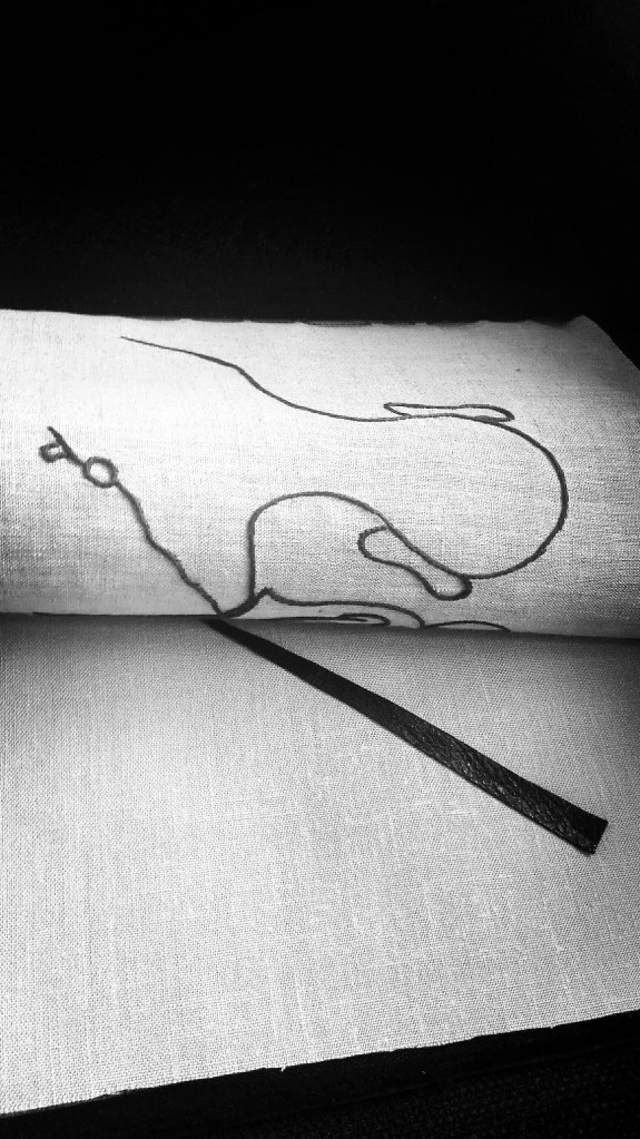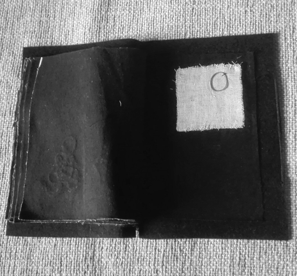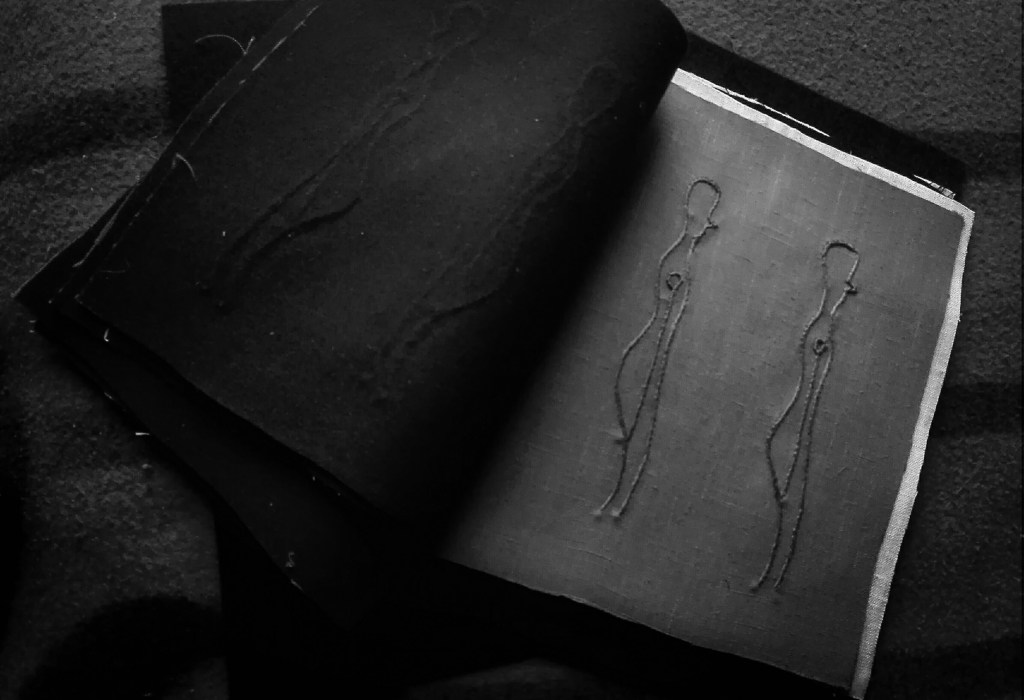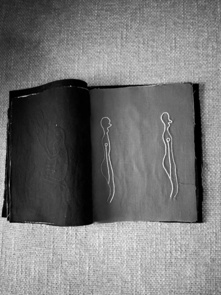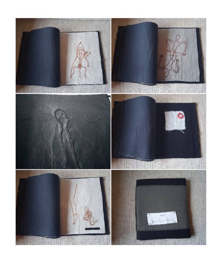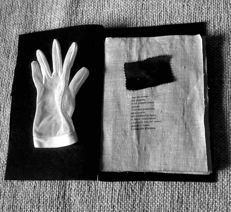 L’idea di fondo è stata quella di comporre un prezioso libro-scrigno, contenente veri e propri Studi per una metamorfosi della parola e per una possibile curvatura della linea-verso (con conseguente allontanamento dal criterio di orizzontalità). Il processo di modificazione della Forma e l’approfondimento di una gestualità significativa e ampia sono stati basilari per lo sviluppo del lavoro. Il risultato è una vera e propria raccolta poetica e visuale, che ridefinisce in modo singolare l’atto scrittorio (la perforazione, il punto, il tratteggio sono scritture). L’inchiostro e il filo si amalgamano, giungendo alla formulazione di linee-immagini, che definisco poesie “tattili–curvilinee“.
