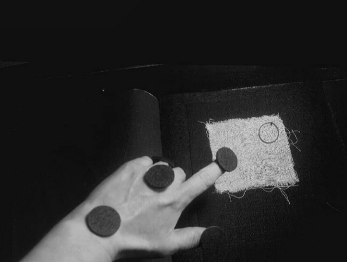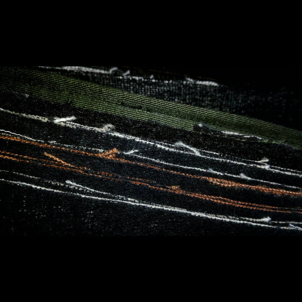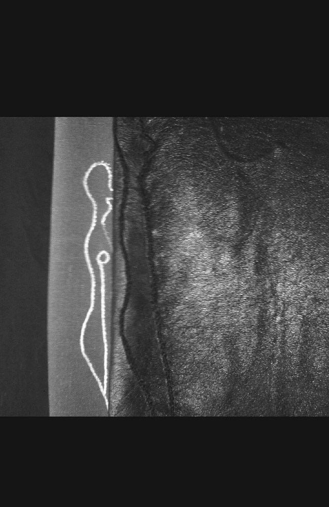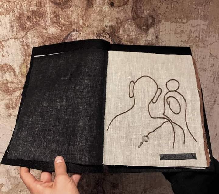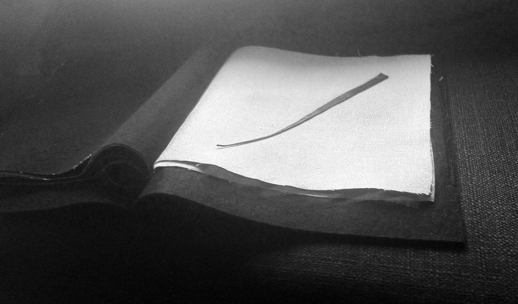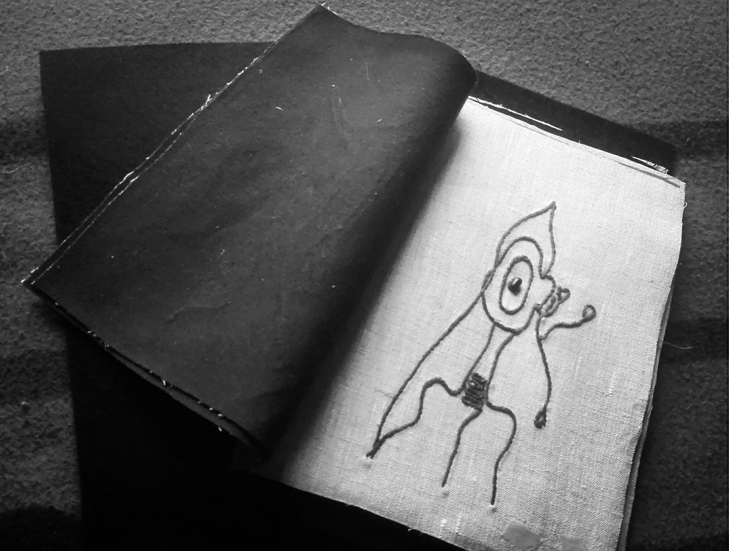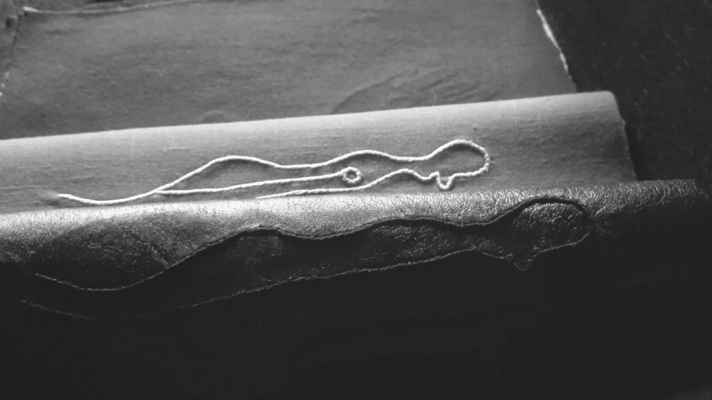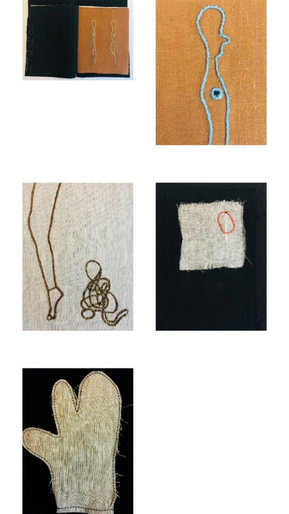 L’idea di fondo è stata quella di comporre un prezioso libro-scrigno, contenente veri e propri Studi per una metamorfosi della parola e per una possibile curvatura della linea-verso (con conseguente allontanamento dal criterio di orizzontalità). Il processo di modificazione della Forma e l’approfondimento di una gestualità significativa e ampia sono stati basilari per lo sviluppo del lavoro. Il risultato è una vera e propria raccolta poetica e visuale, che ridefinisce in modo singolare l’atto scrittorio (la perforazione, il punto, il tratteggio sono scritture). L’inchiostro e il filo si amalgamano, giungendo alla formulazione di linee-immagini, che definisco poesie “tattili–curvilinee“.