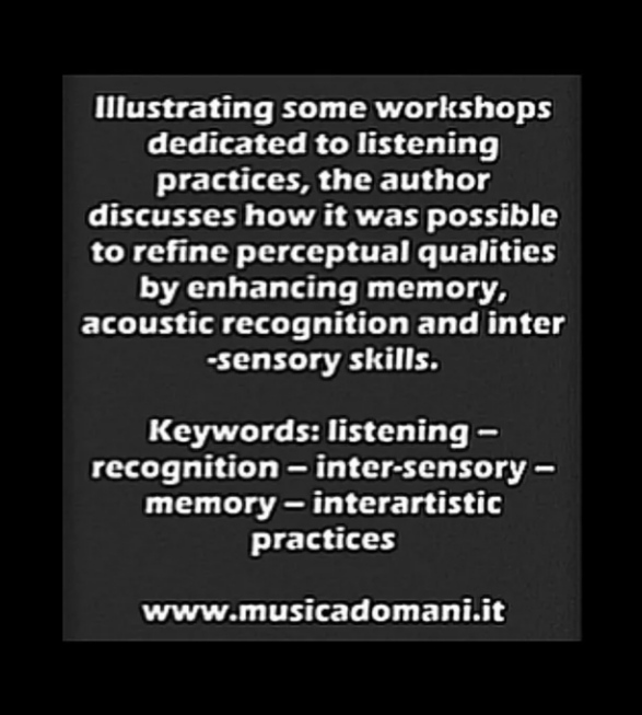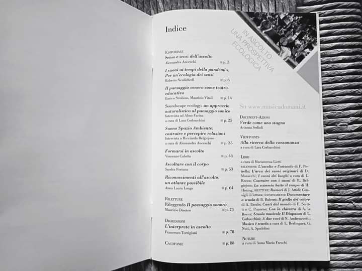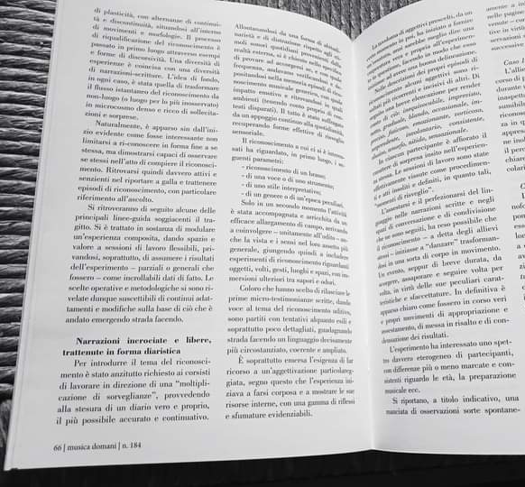 Nella rivista Musica Domani ( n.184) si potrà leggere il saggio intitolato Riconoscimenti all’Ascolto – Un atlante possibile
